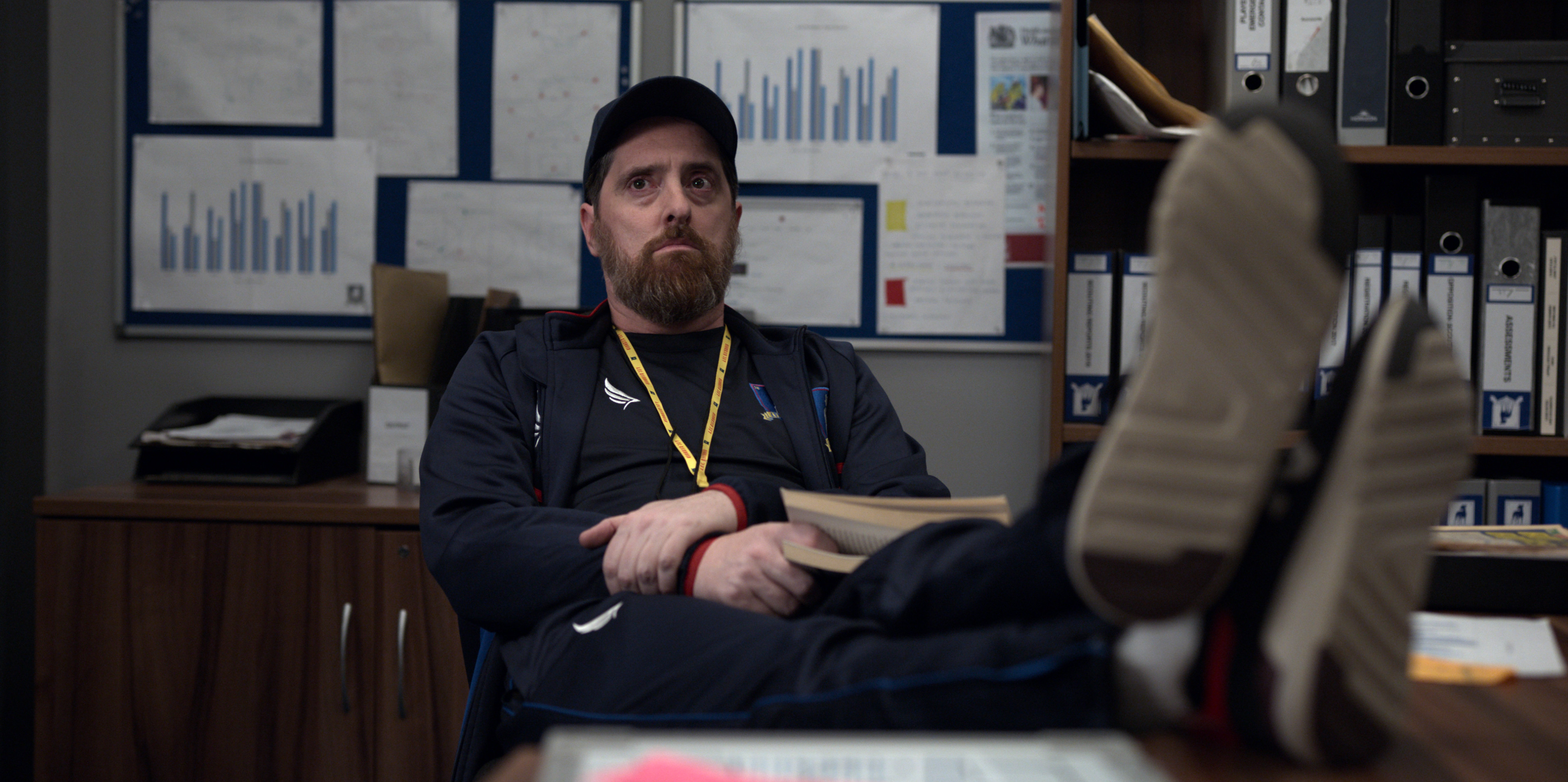 When Ted calls Roy to their office and compliments him for being a talented footballer, Roy instead insults him by calling Ted "Ronald Fucking MacDonald". Ted asks Beard whether he'd let Roy call him that, which Beard only shrugs and say that it wasn't him who got insulted. Ted only smiles and say that they will win Roy over, which Beard agrees that it will make the footballer furious. Beard then hands him a roll of tape so he can stick a 'BELIEVE' poster on the wall above their office door.