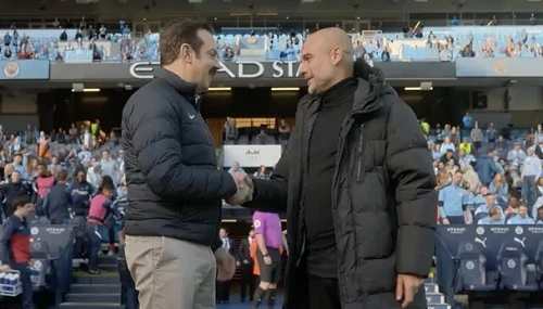 Ted couldn't agree more and called him coach. When he returns to Beard, both of them are giddy and fanboying because they've met Pep. Pep also hugs Jamie and have a friendly short chat. Nobody can hear what they are saying, but Pep looks proud at Jamie.